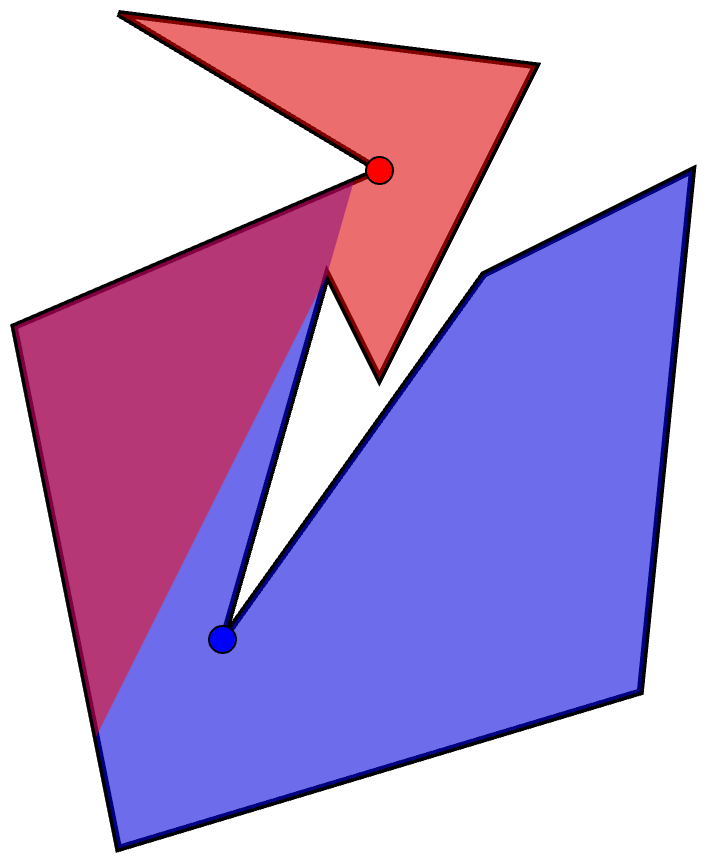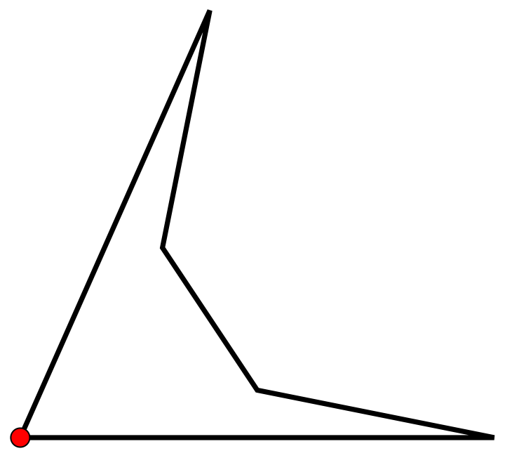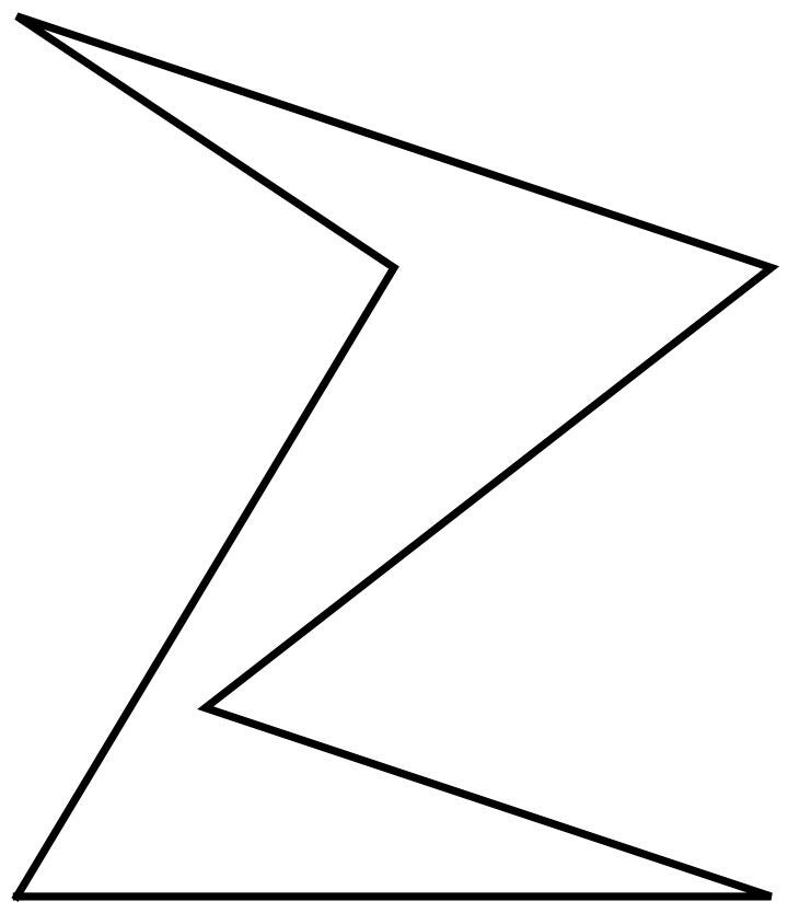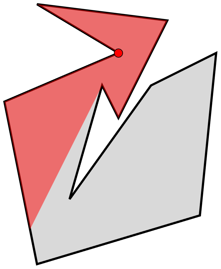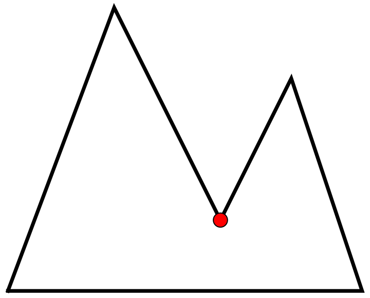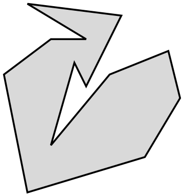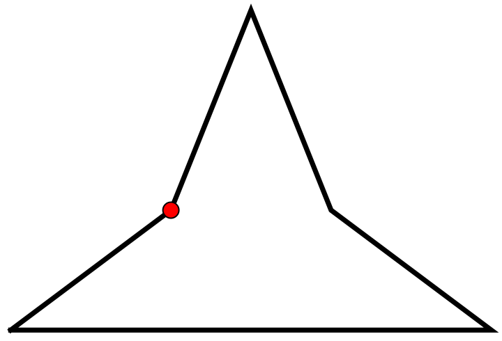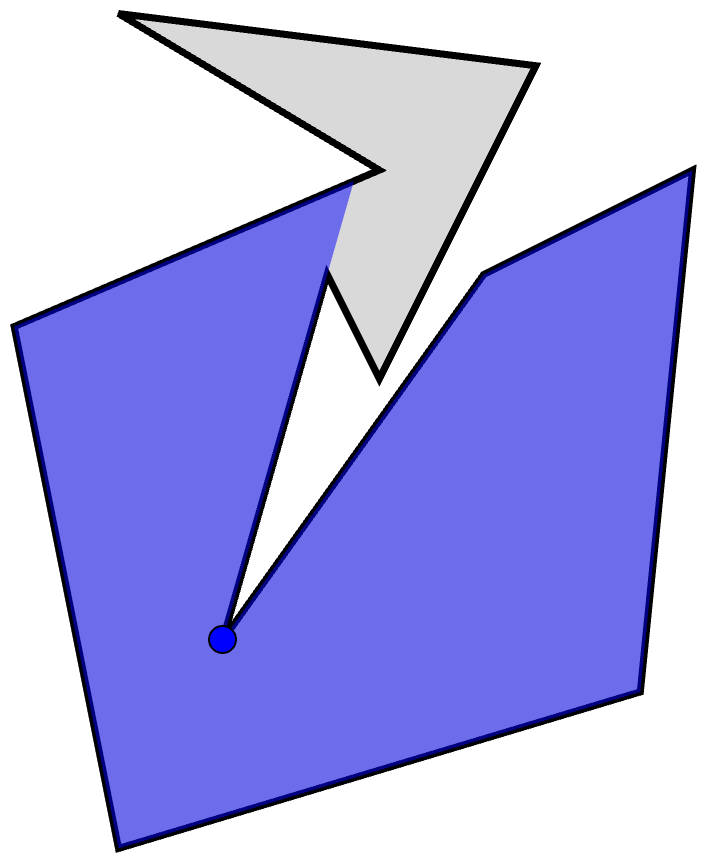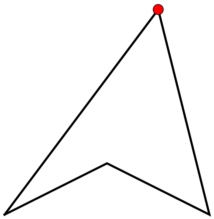 La réponse est négative. Voici des polygones non convexes qui peuvent être surveillés par une seule caméra: à la figure 6, un quadrilatère, et à la figure 7, des pentagones (polygones à 5 côtés). Par contre, la caméra ne peut pas être placée en n’importe quel sommet.