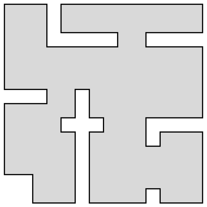 Regardons un exemple : la figure 1 montre une galerie donnée par un polygone à 11 sommets, et donc 11 côtés.