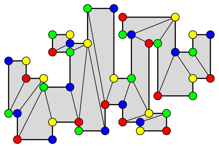 Un résultat affirme qu’on peut diviser l’intérieur d’un polygone orthogonal en quadrilatères convexes et colorer les sommets du polygone avec quatre couleurs de telle sorte que les sommets de chaque quadrilatère soient de couleurs distinctes.