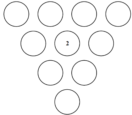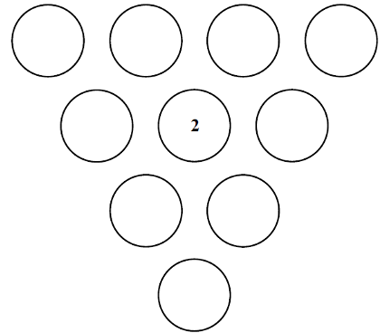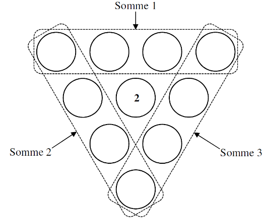 Le « 2 » occupe le cercle du centre et n’est pas utilisé dans les sommes cherchées.