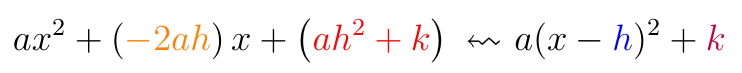 ce qui permet de conclure d’une façon et d’une autre que l’on peut exprimer h et k en fonction de a, b et c, et réciproquement. Dans le présent article, j’aimerais répondre à l’invitation des auteurs à poursuivre la réflexion vers un enrichissement d’une compréhension conceptuelle de la complétion du carré.