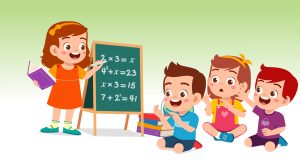 - Pendant la réalisation du problème, l’enseignante interagit avec les élèves (répond aux questions, rappelle à l’ordre certains élèves, etc.).